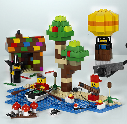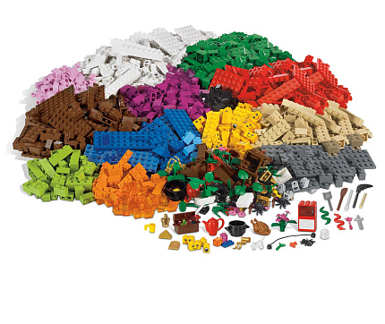 Помимо обычных разноцветных строительных кубиков, в набор включены такие специальные элементы, как пауки, змеи, волшебные палочки, горшки, жареные цыплята, цветы, сундуки с сокровищами, различные прозрачные детали и еще много всего интересного. Этот набор послужит прекрасным дополнением к любому решению LEGO Education для дошкольного образования.