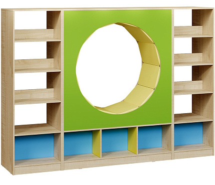 По середине открытый стеллаж с посадочным местом в виде круга 1300х500х1704.