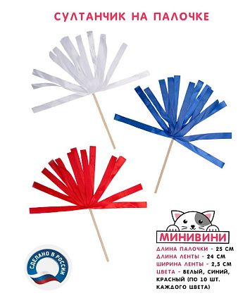4. Султанчик на палочке (белый, красный, синий) - 1 набор по 10 шт. каждого цвета (30 шт.);