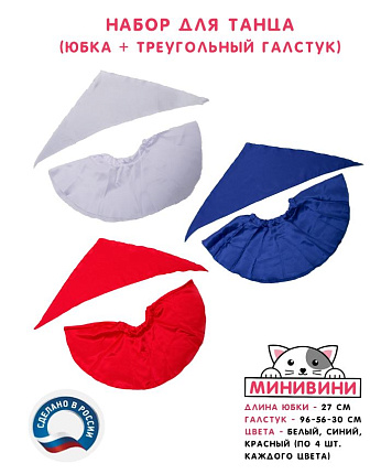 1. Набор для танца юбка + треугольный галстук (белый, красный, синий) - по 4 набора каждого цвета;