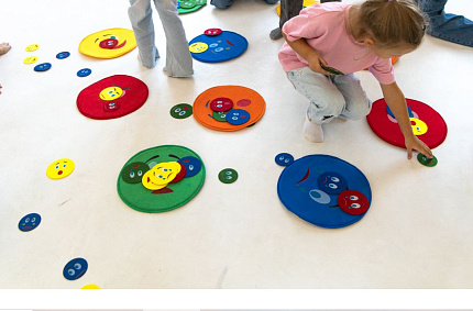 2. Плоские "кочки" (10 шт., 5 цветов). Диаметр 30 см. Материал – флис, поролон, прорезиненная ткань - 100% полиэстер