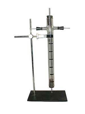 Прибор состоит из стеклянной трубки-корпуса с двумя отводами, в которые через резиновые пробки вставлены электроды. Верхняя и нижняя части трубки закрыты резиновыми пробками со стеклянными трубками. На корпус нанесены метки, делящие его объем на несколько частей.