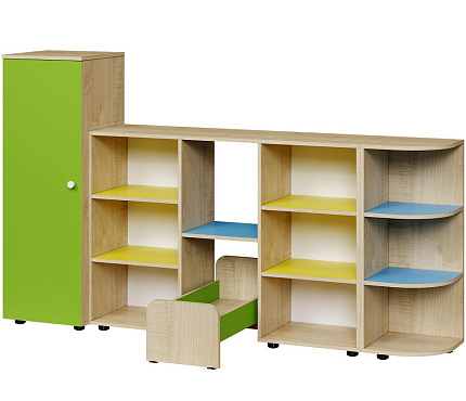 Размеры: Кровать 700х300х310 мм, Стеллаж угловой 340х340х872 мм, Стеллаж 1250х340х872 мм