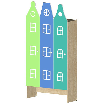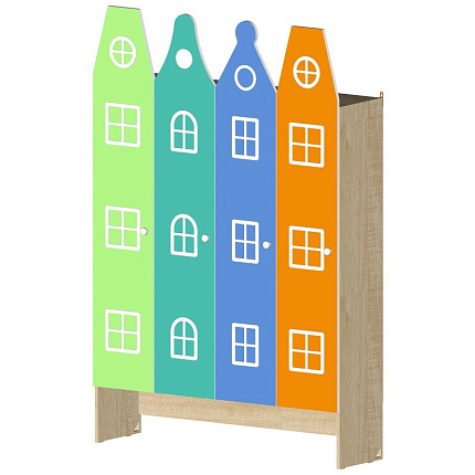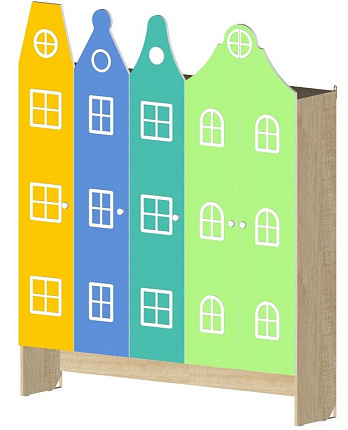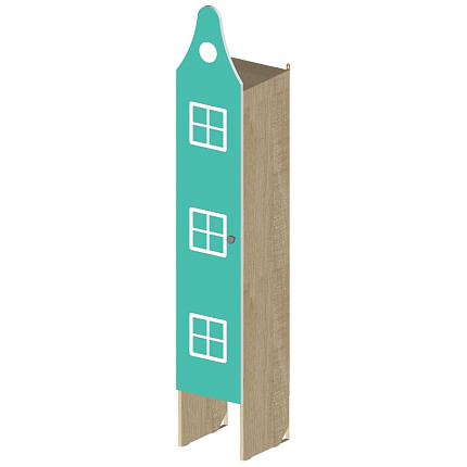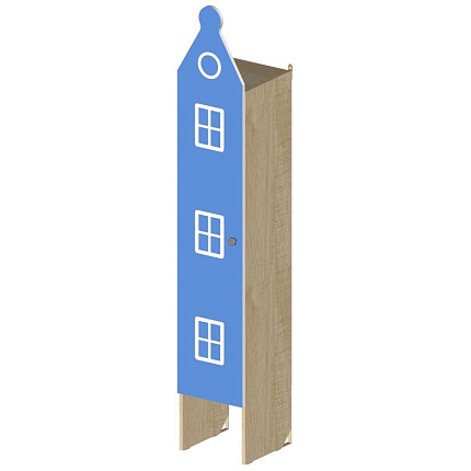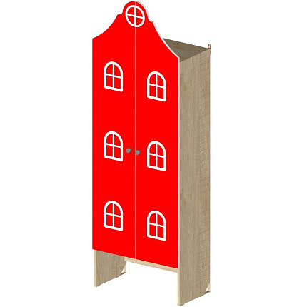 Корпус шкафа для одежды с нишей, с фигурной дверкой в виде домика декорированной накладками в виде окошек.