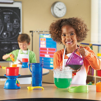 Все дети обожают игры с текучими и сыпучими веществами. И мальчиков и девочек с раннего детства увлекает переменчивость и завораживает струящаяся текстура. Выполняя такие простые действия, как пересыпание и переливание, дети на самом деле учатся базовому пониманию понятий массы и объема. Смешивайте и измеряйте с удовольствием вместе с новым набором от Learning Resources!