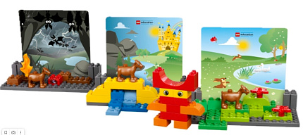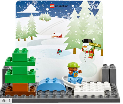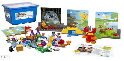 3+, 1-6 учащихся, 109 деталей, учебные карточки, короб для хранения. Набор побуждает детей творчески рассказывать и придумывать истории.