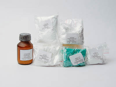 Набор химических реaктивов № 11 ОС Карбонаты Состав набора (кг): Аммония карбонат - 0,05. Калия карбонат - 0,05. Калия гидрокарбонат - 0,1. Меди (II) карбонат - 0,1. Натрия карбонат - 0,1. Натрия гидрокарбонат - 0,1.