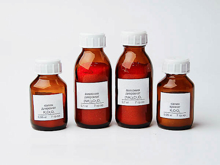 Набор химических реaктивов № 18 С "Соединения хрома" Состав набора (кг): Аммоний двухромовокислый "ч" - 0,2. Калий двухромовокислый "ч" - 0,05. Калий хромовокислый "ч" - 0,05.