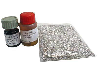 Набор химических реaктивов № 24 ВС "Щелочные и щелочно-земельные металлы" Состав набора (кг): Натрий "ч" - 0,01. Кальций "ч" - 0,01. Магний (стружка) "ч" - 0,015.