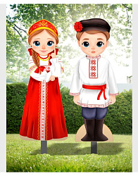 Комплект уличных фигур для детской площадки с металлическими опорами ДОБРЫНЯ и ВАСИЛИСА в русских национальных костюмах, фанера