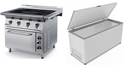 Тепловое и холодильное оборудование, стеллажи и производственные столы