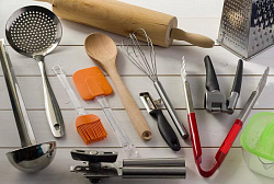 Кухонный инвентарь: дуршлаги, доски, половники, терки, венчики, ножи и т.д.