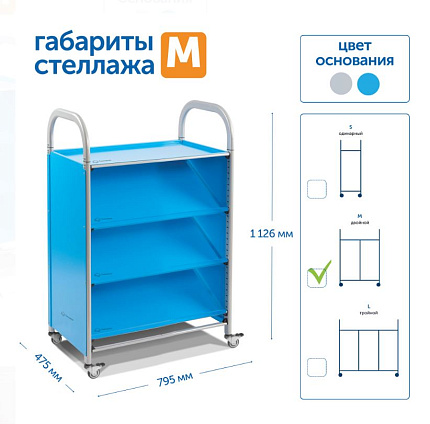 Мобильный металлический стеллаж Сенсориум — современное решение для организации пространства в ДОУ. Подходит для демонстрации, хранения и перемещения учебно-игрового оборудования, дидактического материала, конструктора, наглядных пособий, игрушек.