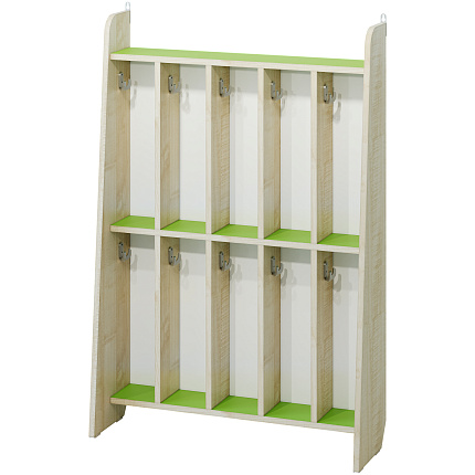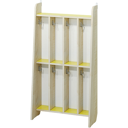 Материал ЛДСП 16 Клен Танзай с цветным акцентом. Цвета: салатовый, голубой, желтый. Кромка Клен Танзай 0,4 мм. Размеры: 3 секции - 454х230х1100 мм. 4 секции - 600х230х1100 мм. 5 секций - 746х230х1100 мм.