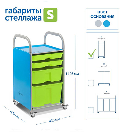 Мобильный металлический стеллаж Сенсориум — современное решение для организации пространства в ДОУ. Подходит для хранения и перемещения учебно-игрового оборудования, дидактического материала, конструктора, наглядных пособий, игрушек.