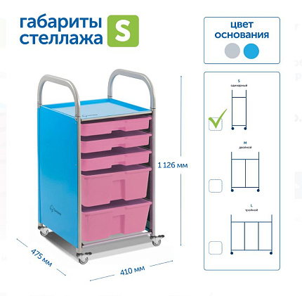 Мобильный металлический стеллаж Сенсориум — современное решение для организации пространства в ДОУ. Подходит для хранения и перемещения учебно-игрового оборудования, дидактического материала, конструктора, наглядных пособий, игрушек.