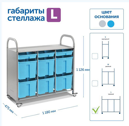 Мобильный металлический стеллаж Сенсориум — современное решение для организации пространства в ДОУ. Подходит для хранения и перемещения учебно-игрового оборудования, дидактического материала, конструктора, наглядных пособий, игрушек.