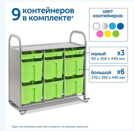 9 контейнеров: 3 малых, 6 больших
