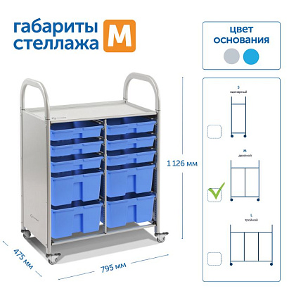 Мобильный металлический стеллаж Сенсориум — современное решение для организации пространства в ДОУ. Подходит для хранения и перемещения учебно-игрового оборудования, дидактического материала, конструктора, наглядных пособий, игрушек.