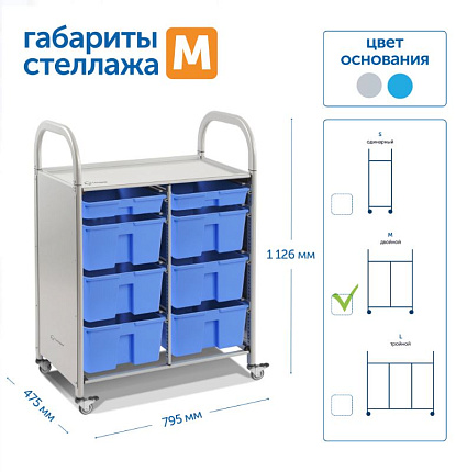 Мобильный металлический стеллаж Сенсориум — современное решение для организации пространства в ДОУ. Подходит для хранения и перемещения учебно-игрового оборудования, дидактического материала, конструктора, наглядных пособий, игрушек.