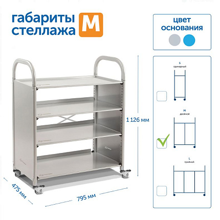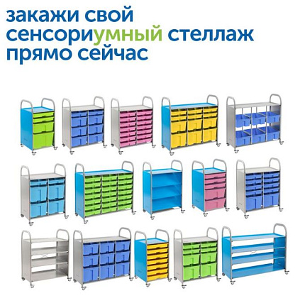 Мобильный металлический стеллаж Сенсориум — современное решение для организации пространства в ДОУ. Подходит для демонстрации, хранения и перемещения учебно-игрового оборудования, дидактического материала, конструктора, наглядных пособий, игрушек.