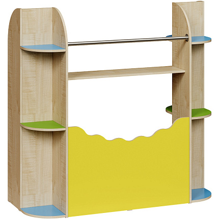 Размеры: 1370х560х1400 мм. Материал ЛДСП 16 мм корпус Клен, полки Голубой, Гринери. Панель Желтый. Кромка Клен Танзай 2,0-0,4 мм.
