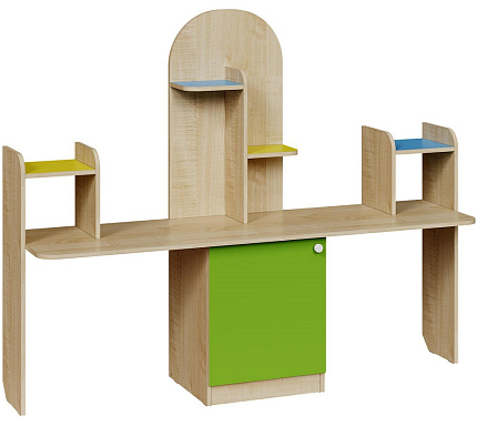 Размеры 1700х450х1350 мм. Материал ЛДСП 16 мм корпус Клен Танзай, полки Голубой, Желтый. Фасад Гринери. Кромка Клен Танзай 2,0-0,4 мм.
